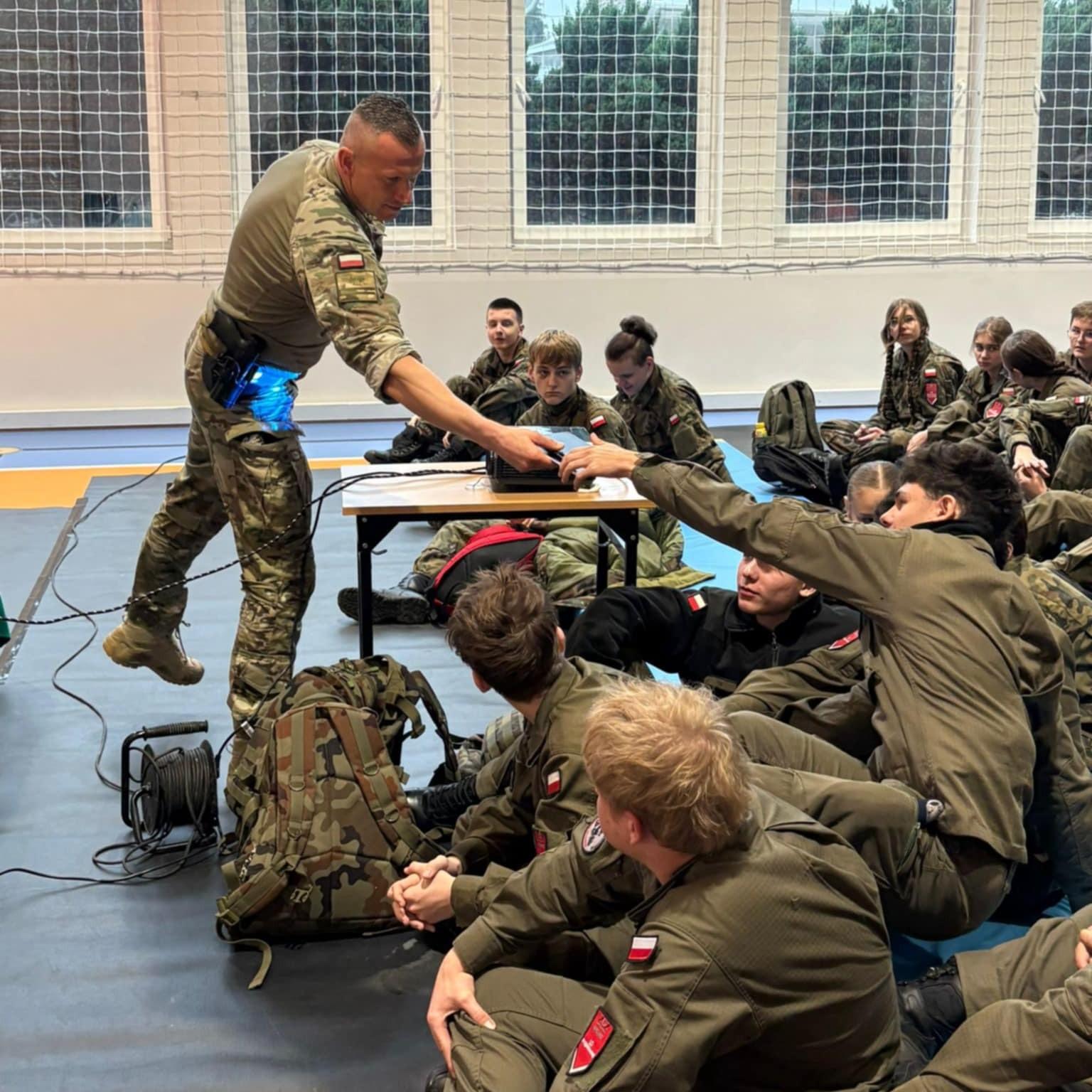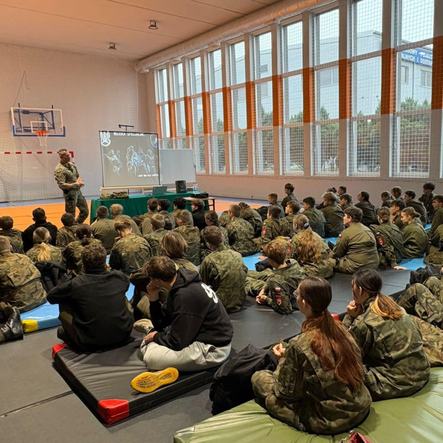 Młodzież aktywnie uczestniczyła w wydarzeniu, zadając liczne pytania, na które nasz gość chętnie i wyczerpująco odpowiadał, a za aktywność uczniowie otrzymali upominki od Dowództwa Komponentu Wojsk Specjalnych. Było to inspirujące spotkanie, które pozwoliło uczniom lepiej zrozumieć specyfikę tej wymagającej służby oraz z pewnością stało się motywacją do dalszego rozwijania zainteresowań w tym kierunku.